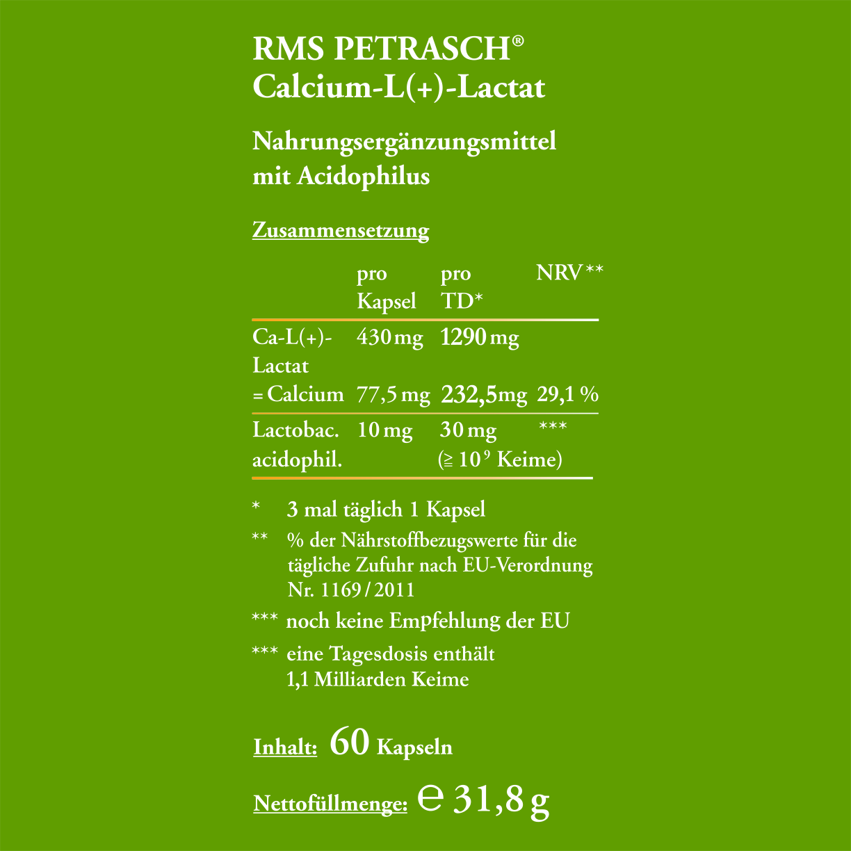 RMS Petrasch Calcium-Lactat Kapseln, 60 Kapseln, 31.8 g